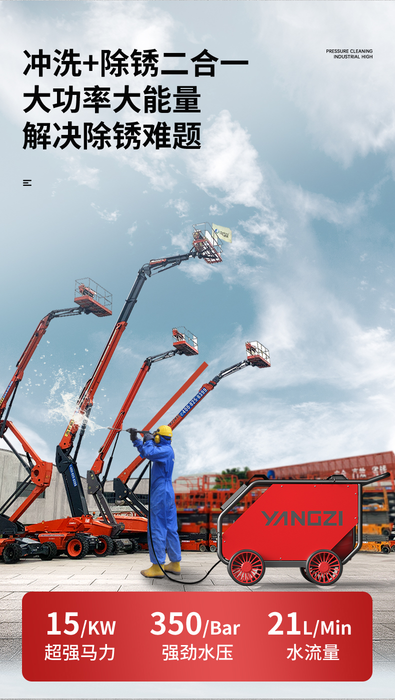 揚子紅鋒高壓清洗機YZ-QXJ 沖洗除銹二合一 機場街道貨車清洗